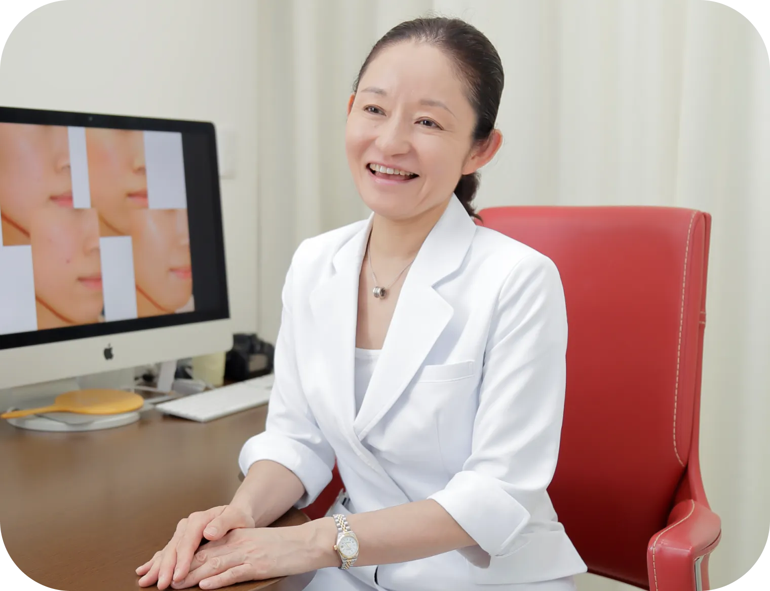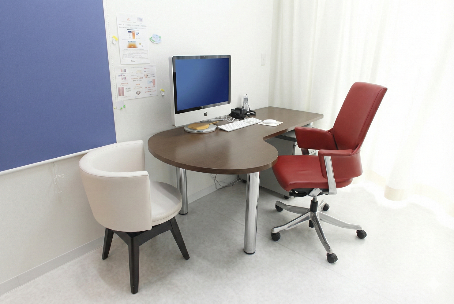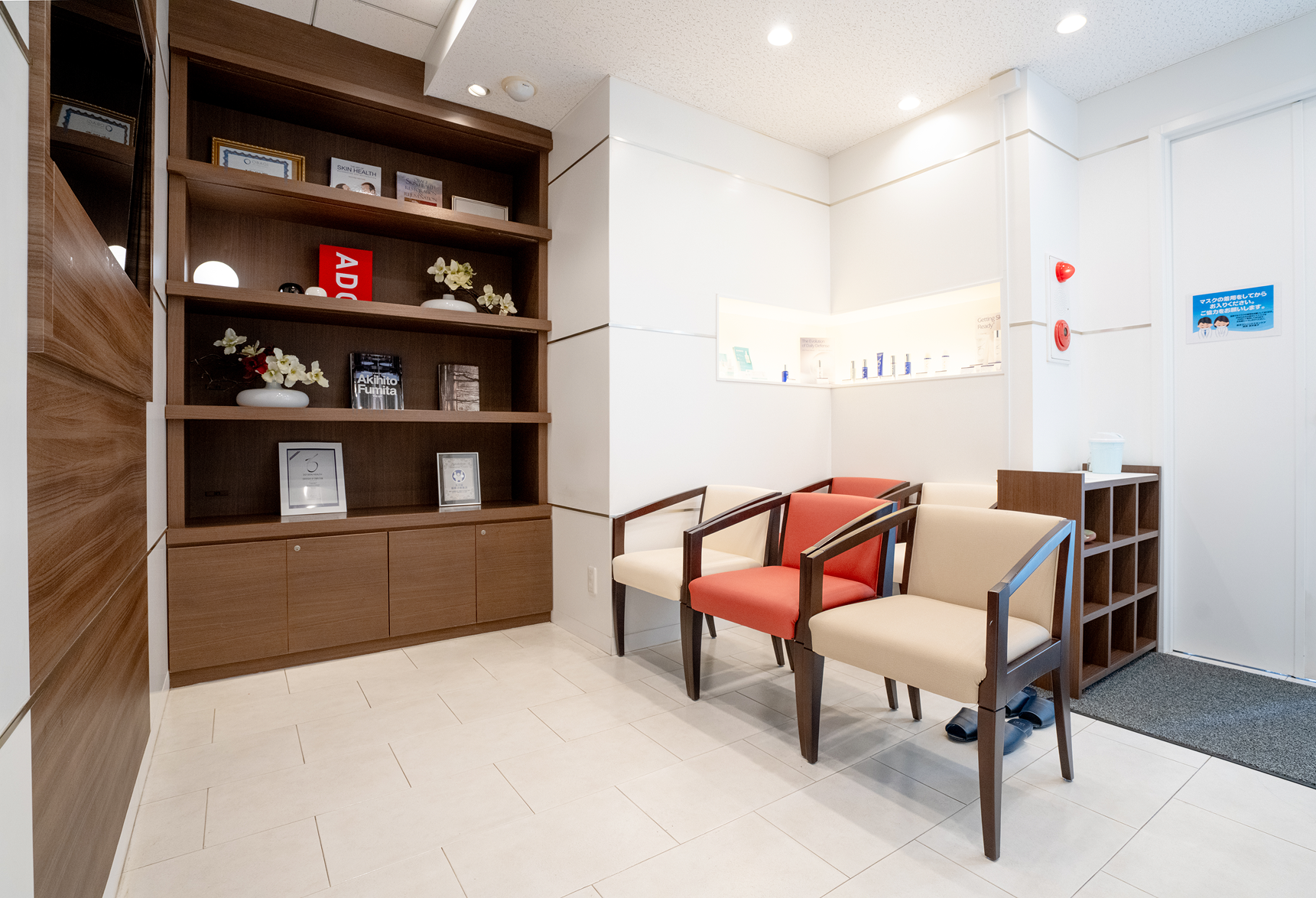 肌の悩みに親身に寄り添い皮膚のトラブルから美容まで対応 保険自費に関わらずさまざまな治療の選択肢をお伝えし、 ご要望に合わせて治療法を選んでいただくようにしています。 力を入れているのはニキビ治療です。 ニキビは症状や体質、日常のスキンケアの方法などによって 最適な治療法が異なります。 自己判断で市販薬などを使うと治療を長引かせてしまうこともあるので、まずはご気軽にご相談ください。 皮膚のトラブルは目に見えやすいため、 場合によっては精神的なストレスに繋がってしまうこともあります。 患者さまの悩みや想いを共有し、 前向きな気持ちになれるお手伝いができれば嬉しいです。 院内紹介 受付・待合室 パウダールーム 診察室・治療ルーム