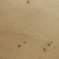 ほくろいぼ稗粒腫脂腺増殖症血管腫(老人性血管腫)静脈湖 ほくろ ほくろは、メラニン色素をつくる色素細胞(メラノサイト)という細胞が変化した母斑細胞という細胞のかたまりです。 母斑細胞においてもメラニン色素が産生されますが、色素量により、肌色から褐色、黒色と色調に違いがあり、母斑細胞の増殖により平らなものから盛り上がったものへと変化することもあります。 治療の基本は、ほくろの細胞を取り去ることです。残っていると再発の可能性があります。 ほくろの治療には、レーザーと手術の2つの方法があります。 比較的小さなほくろに対してはおもにレーザー治療、大きなほくろ、または悪性を疑うほくろの場合には手術による治療を行います。実際にほくろを確認し、大きさ、部位、状態に応じて最適な治療を選択します。 治療方法 CO2レーザー治療 当院では、ほくろの治療に、CO2(炭酸ガス)レーザーを使用します。治療直後は凹みが生じます。 大きさにもよりますが、7〜10日程度でおおよそ平らになります。 その後、赤み・硬さが表れ、通常3~4ヶ月で徐々に目立たなくなっていきます。 CO2レーザーによるほくろ治療の説明動画 治療前 治療直後 治療2ヶ月後 治療前の状態です 治療直後はこのように 傷の状態になります わずかに痕が残っています 治り方には個人差があります 治療前 治療7ヶ月後 治療前の状態です 治療部位には痕が残っています 治り方には個人差があります 治療時間 約5分(1ヶ所) 回復期間 約7日間(大きさ・部位により異なります・個人差あり) 治療費 直径2mmまで1ヶ所 ¥13,200(税込) 1mm増す毎に+¥5,500(税込) 補足 施術後、外用薬(¥990(税込))または創傷被覆剤(¥1,100(税込))を貼付します。 痛みは個人差あり、必要であれば局所麻酔注射(¥3,300)の使用も可能です。 凹み・ケロイド等の痕が残る可能性があります。再発の可能性もあります。 皮膚外科による治療 皮膚外科による治療とは、皮膚にできたほくろ、イボ、腫瘍などを手術で治療する方法です。 通常、治療時に病理検査も行い、性状を調べます。治療による傷は残りますが、なるべく目立たないような形成外科的なテクニックを用いて手術を行います。ほくろの部位・大きさ・状態によっては皮膚外科による切除が適応となります。 治療前 手術1週間後 術後4ヶ月 治療前の状態です 抜糸直後の状態です 赤みは消失していますが 傷は残ります 治療時間 約20分〜(大きさ・部位により異なります) 通院回数 約1週間後に抜糸します。傷跡の経過観察のため、1ヶ月後くらいに再診します。 治療費 大きさ、部位により異なります。(保険適用で手術目安¥7,500〜) 補足 手術前に必要に応じて血液検査をいたします。(保険適用で約¥3,000) 手術後は、翌診翌日からはシャワー浴は可能です。施術後、外用薬または創傷被覆剤(¥1,100)を貼付します。 傷は残ります。ケロイド等の可能性があります。 ※保険診療でできるほくろ治療 当院では、ほくろの性状や大きさ、部位、経過を確認し、診断した上で、保険適用での手術治療をご案内しています。 詳細は診察時にご確認ください。 いぼ ひとくちにいぼといっても、様々なものがあります。 顔のいぼは尋常性疣贅のほか、青年性扁平疣贅や老人性疣贅(脂漏性角化症)がよくみられます。 前者のふたつはウイルス性、後者は紫外線の影響や皮膚の老化によるものです。 他には、眼の周りにみられることが多い肌色の汗管腫、白色調の稗粒腫、頬や額にみられる脂腺増殖症なども、正確にはいぼではありませんが、「いぼのようなものができた」と受診される方が多いです。 首・体のいぼとなると、軟性線維腫(アクロコルドン:小さくて少し盛り上がった淡褐色のタイプ、スキンタッグ:アクロコルドンより大きく表皮から盛り上がったタイプ、軟性線維腫:5mmを超えるもの)や脂漏性角化症が多いです。 皮膚の老化現象のひとつですが、紫外線や摩擦そして遺伝との関係もあるようです。 当院では主にCO2レーザーを用いて治療します。 治療前 治療後 脂漏性角化症 スキンタッグ 首いぼ 治療時間 約5分(個数大きさにより異なります) 回復期間 約7日間(大きさ・部位により異なります・個人差あり) 治療費 直径2mmまで1ヶ所 ¥2,200(税込)1mm増す毎に +¥2,200(税込) 補足 施術後、外用薬(¥990〜)または創傷被覆剤(¥1,100)を貼付します。 再発する可能性もあります。多数ある際は、診察時にご相談ください。 治療痕やケロイドが残る可能性があります。再発する可能性があります。 稗粒腫 稗粒腫は、1〜2mmの白色のかたいもので、表皮嚢腫の小さなもの(うぶ毛の毛穴の皮膚からできたもの)と考えられています。 乳児のころにできたものは、成長とともに自然に消えていくことがありますが、成人になってからできたものに関しては、基本、自然にとれることは少ないです。また、火傷や外傷が治ったあとにできることもあります。 当院ではCO2レーザーでの治療を行っております。(自費診療) 治療時間 約5分(個数大きさによ