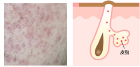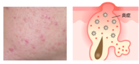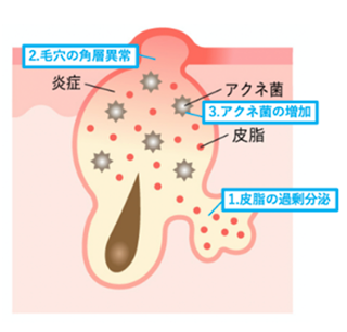 当院のアプローチ方法 「ニキビ」といっても、その原因・状態は様々です。当院では、ニキビやニキビ跡の状態を見極め、「保険診療」「保険外診療」の2つのアプローチから適した治療をご提案します。 1.ニキビとは ニキビの原因 ニキビの種類と状態 2.ニキビの治療 当院の保険外診療 保険内診療 ホームケア ニキビとは 医学的には「尋常性ざ瘡」と呼ばれ、皮膚の毛穴に皮脂や角質が詰まることで内部にアクネ菌が増殖し炎症を引き起こす病気です。主に顔・背中・胸など皮脂分泌が盛んな部位にできやすくなります。 ニキビの原因 01皮脂の過剰分泌 思春期やストレス、ホルモンバランスの影響で皮脂腺が活発になります。 02毛穴の角層異常 皮膚ターンオーバーの乱れや不適切な洗顔や化粧、乾燥や擦るなどの刺激により、古い角質が剥がれず毛穴を防いでしまいます。 03アクネ菌の増殖と周囲への炎症 詰まった毛穴の中でアクネ菌が増殖し、毛穴と周囲に炎症を起こします。 04その他の原因 睡眠不足や食生活の乱れ、便秘などがニキビの原因となることもあります。 ニキビの種類と状態 一言でニキビと言っても以下のような種類があり、それぞれ原因や対処法が異なります。 マイクロコメド非炎症ニキビ 目に見えない段階。毛穴の出口が狭くなり、皮脂が詰まり始めている状態です。 白ニキビ非炎症ニキビ 皮脂や角質が毛穴に詰まり、白っぽく盛り上がるニキビの初期段階。皮膚の内側では毛包が広がりアクネ菌が増え始めます。 黒ニキビ非炎症ニキビ 皮脂や角質が溜まっている部位の毛穴が開き、酸化することで黒く見える状態です。 赤ニキビ炎症ニキビ アクネ菌が増殖し、内部で炎症を起こし赤く腫れている状態です。触れると痛みを感じることがあります。 黄ニキビ炎症ニキビ 赤ニキビがさらに悪化し、炎症が広がり毛穴内部に膿が溜まっている状態です。さらに重症化するとニキビ跡が出来てしまうことがあります。 ニキビ痕 ニキビを放置したり無理に潰したりすることで、炎症後の赤みや色素沈着、盛り上がったケロイド状の痕(肥厚性瘢痕)やクレーター痕(萎縮性瘢痕)が残ることがあります。 ニキビの治療 ニキビの治療は、個々の肌やニキビの状態に応じて治療を行うことが大切です。洗顔方法を含めた日常のスキンケアの見直しやライフスタイルに合わせた治療方法を考えていく必要があります。ここでは、当院で行っている代表的なニキビ治療について紹介します。 保険外診療でできること 保険診療での治療に効果を感じられない、早く治したいなどといった方におすすめです。 内服薬 イソトレチノイン 皮脂分泌の抑制、毛包漏斗部(毛穴開口部)の角化異常の正常化、抗炎症作用、アクネ桿菌の増殖抑制作用のある、難治性ニキビの治療薬(日本国内未承認)です。症状により1~2ヶ月後より効果が出現し、20週の治療で60~70%の方においてニキビができ難くなると言われています。 アルダクトン(スピロノラクトン) 以前から浮腫や高血圧症治療、原発性アルドステロン症の治療に使用されている、体内から水分を排出させ、血圧を下げるお薬です。成人女性のニキビの原因となる男性ホルモン(アンドロゲン)を受け取る部分に競合的に結合、働きを抑える作用もあり、これを利用しニキビを改善へ導きます。 外用薬 アゼライン酸クリーム 欧米においては古くから、ニキビ治療薬として一般的に使用されています。皮脂分泌の抑制・角栓予防・抗菌作用・抗酸化作用・メラニン生成抑制などの作用があります。アゼライン酸は、穀類などにも含まれている成分で、妊娠・授乳中にも使用できます。ニキビ治療以外にも、酒皶・色素沈着などの治療にも使用されています。(国内においては、未承認薬でしたが、化粧品として発売されました) アゼライン酸クリームについて詳しくはこちら ZO SKIN HEALTH 最新の技術をもとに、高濃度の整肌成分であるレチノール、ビタミンC、乳酸など使用し、コラーゲンやエラスチン生成をサポートすることで、細胞活動を呼び覚します。反応期、耐久期、完成期の3つのプロセスを経て、お肌の状態、年齢、性別、民族を問わず真に美しく健やかなお肌を生み出します。 ZO SKIN HEALTHについて詳しくはこちら クリニックで受ける自費治療 プラズマ これまで皮膚の治療器に用いられてきたエネルギー源とは全く異なる、新たなエネルギー源「プラズマ」を使用し、肌を活性化、再生へと導きます。皮膚表面の組織損傷が少ないため、創傷治癒に重要な成長因子などの漏出がなく、レーザー治療と比較し、少ない副作用で、高い治療効果を期待できます。 プラズマについて詳しくはこちら eCO2レーザー 炭酸ガスを使用したマイクロ単位のビームにより、健常皮膚組織を残しつつ真皮層まで届く微細な穴を開けるため、ダウンタイムを短縮しつつ肌を生まれ変わらせます。しわやたるみなどの太く浅めに行う治療から、傷あとやニキビあとなど細く深いレーザーを使用する治療まで、幅
